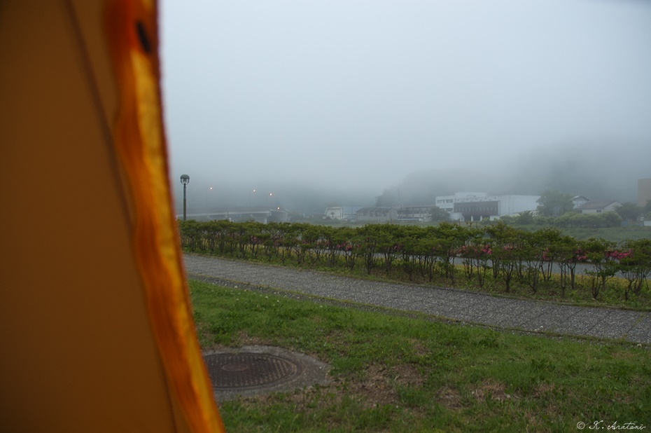 05:00 目を覚ます。四万十川の支流・目の前の広見川には朝霧が立ち込めていた。