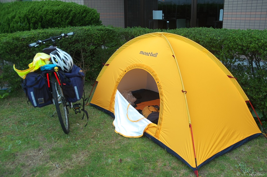 手続き(\350)をして、テント設営。輪行パッキングのシミュレーション。