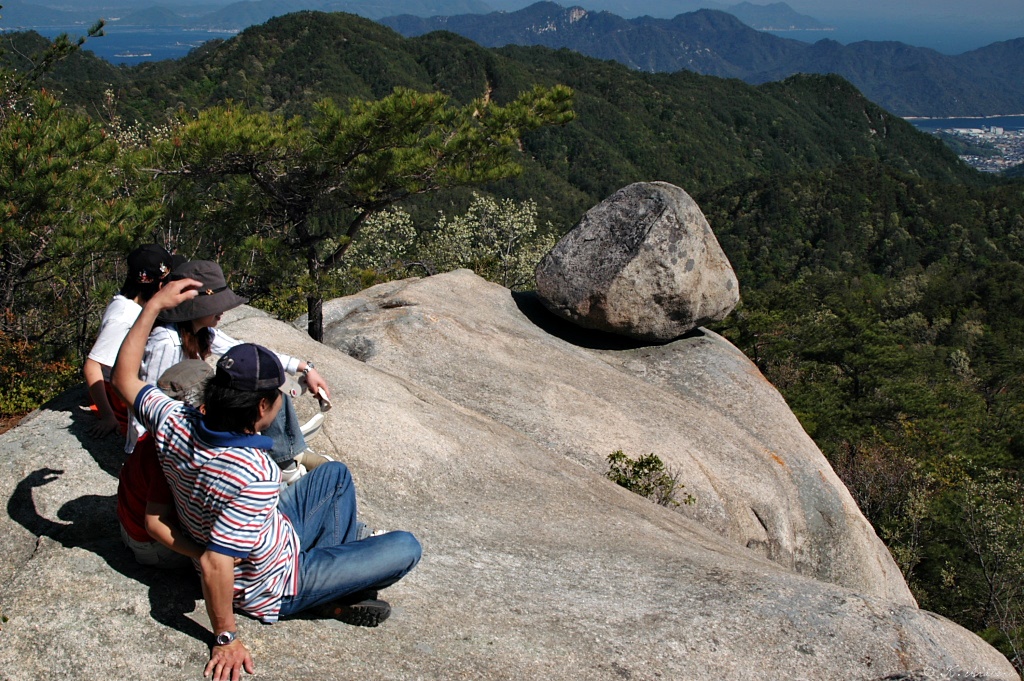 山頂で昼食後、縦走wしておむすび岩へ。
